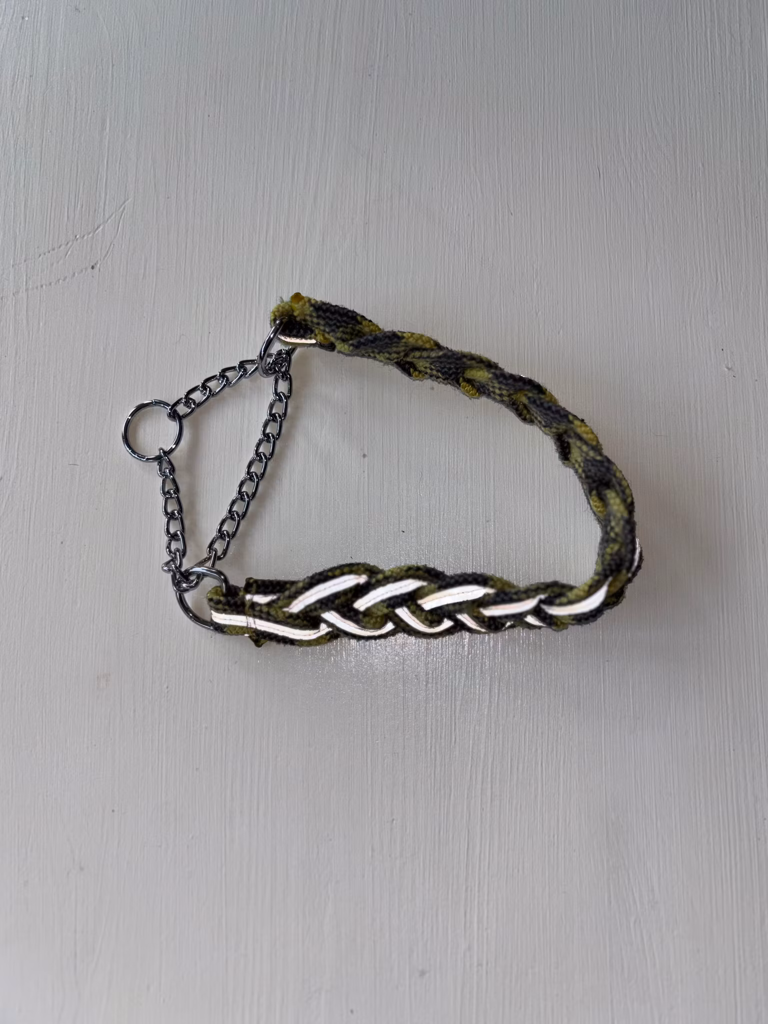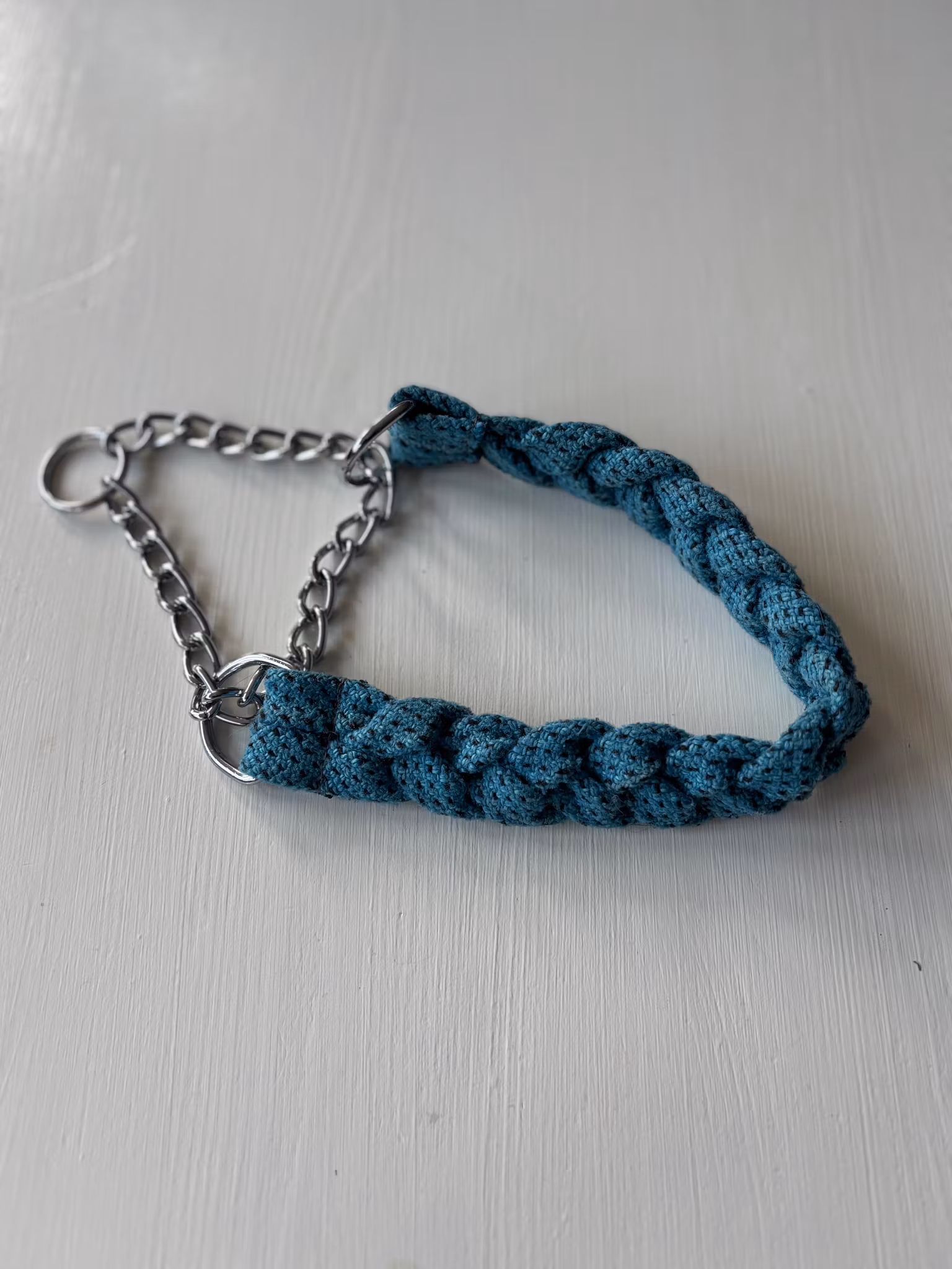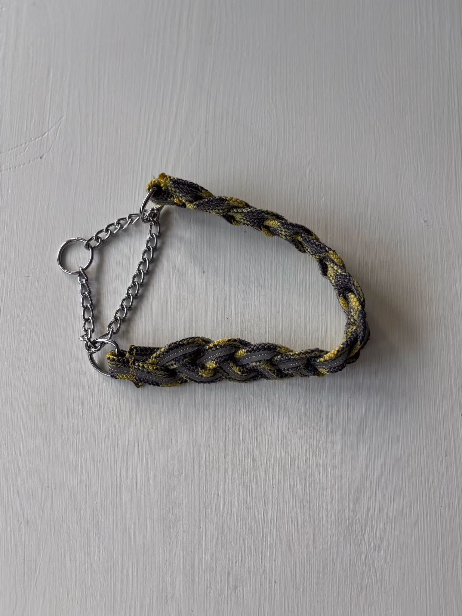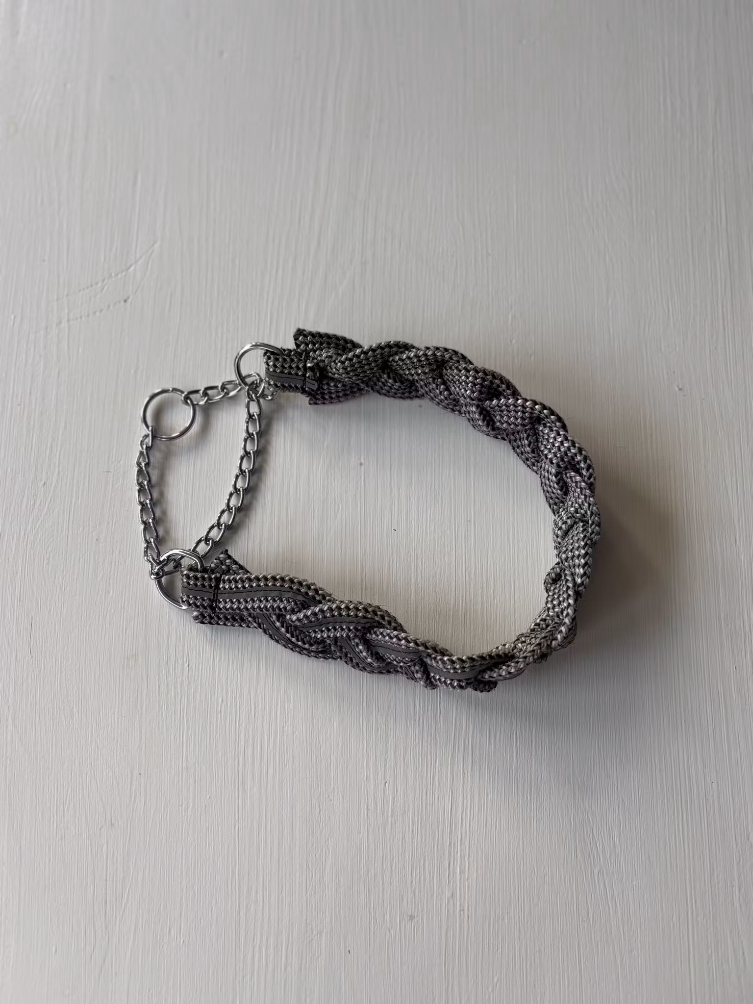 Ett flätat halsband med en halvstryps kedja.